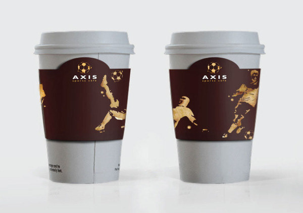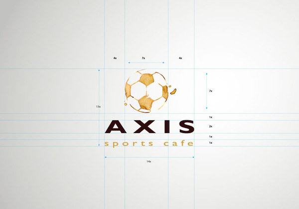 Axis sports cafe, The logo utilizes a soccer ball as it is one of the most popular games. The logo looks like a coffee stain to express the “cafe” aspect of this brand. With warm and elegant colors.